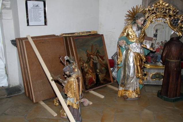 Im Vorfeld haben viele fleißige Helfer die Ausräumarbeiten des Sakristeigangs und die Räumung der Kinderbänke, übernommen. „Schwierig war die Suche nach ‚Ausweichquartieren’ für Bänke und Heiligenfiguren“, so Pfarrer Sturm. „Kein leichte Aufgabe, die einiges Kopfzerbrechen bereitete,“