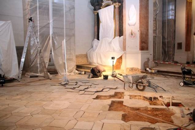 „Bei all diesen Arbeiten kommt es hin und wieder auch zu Überraschungen“, weiß Architektin Carola Setz. „So trat beim Öffnen des Bodens im Mittelgang plötzlich ein Hohlraum zutage, der ein Skelett barg. Nach Rücksprache mit Frau Dr. Codreanu, Archäologin des Bayerischen Landesamtes für Denkmalpflege, wurde der Fund mittels Fotografien dokumentiert und konnte dann wieder verschlossen werden.“