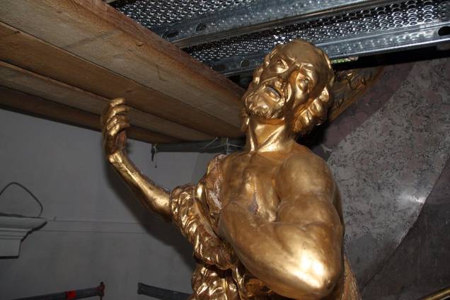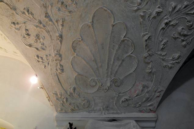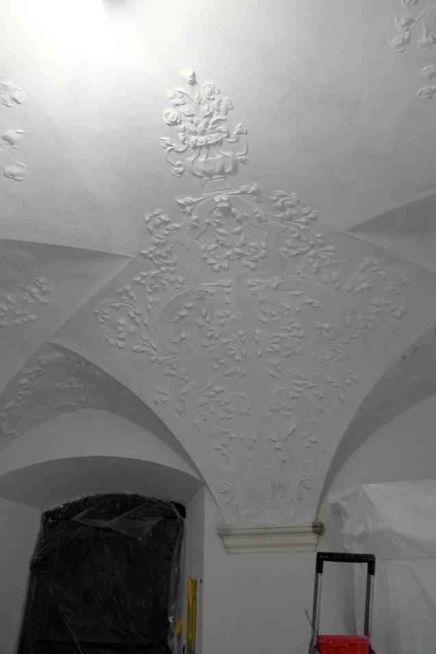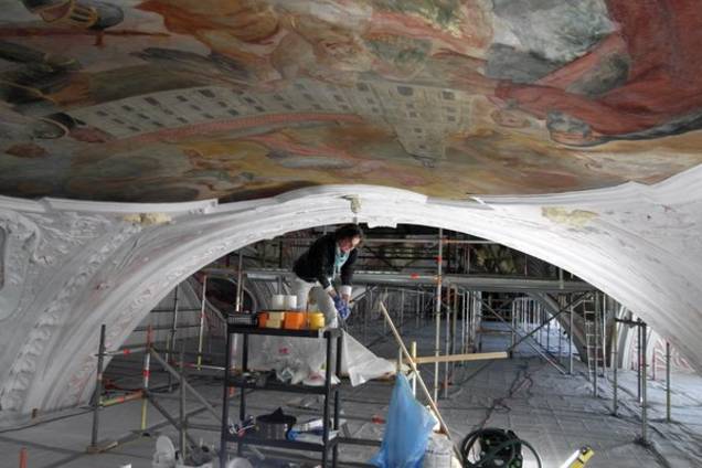 Fortschreiten der Restaurierungen von Raumschale und Ausstattung