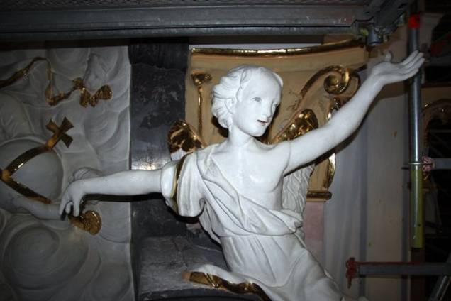 Im ersten Quartal 2016 wurden nun die Angebote für die Restaurierung von Altären, Gemälden, Figuren eingeholt. Seit einigen Wochen läuft schon die Konservierung und Restaurierung der Altäre nach „gewohntem Muster“: Reinigung, Beseitigung von Schäden und Konservierung, Retusche und abschließende Oberflächenbehandlung. „Insgesamt ein sehr konservatorisches Vorgehen, damit auch das gewohnte Erscheinungsbild als Ganzes erhalten bleibt“, betonte die Architektin.