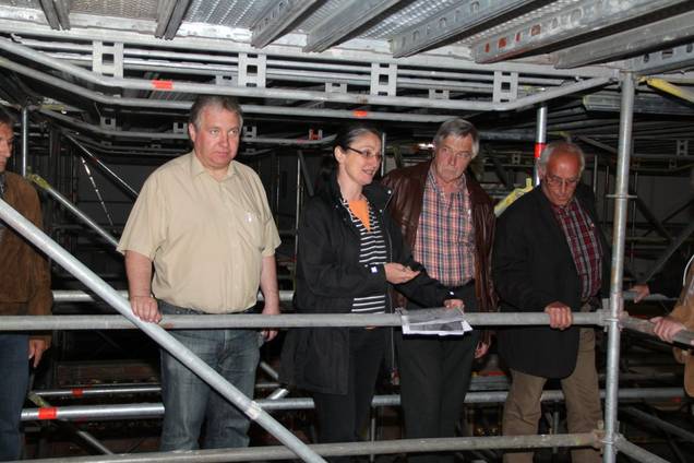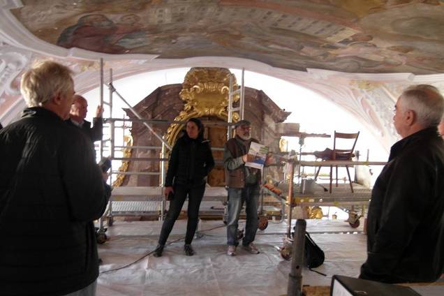 „Wir sind voll im Zeitrahmen, so dass die Sanierungsarbeiten wohl im August 2017 abgeschlossen sein werden und die Kirche im Oktober zum Weihejubiläum vor 300 Jahren in neuem Glanz erstrahlen wird, ist Architektin Carola Setz überzeugt. Die Sakristei, die ebenfalls saniert wird, bezeichnet sie bei einer Besichtigung der Sanierungsschritte durch den Ensdorfer Gemeinderates als „ein ganz besonderes Juwel“.