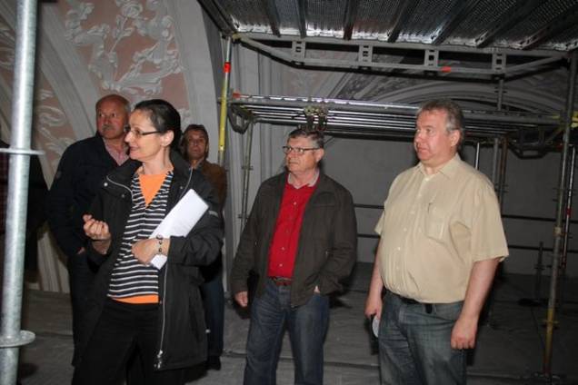 Bürgermeister Markus Dollacker dankte der „sehr engagierten“ Architektin für die interessante Vorstellung der Sanierungsarbeiten. In etwa drei Monaten wird sich der Ensdorfer Gemeindrat erneut in der Kirche treffen. Dann will man Restauratoren bei ihrer Arbeit am großen Kuppelfresko über die Schulter schauen.